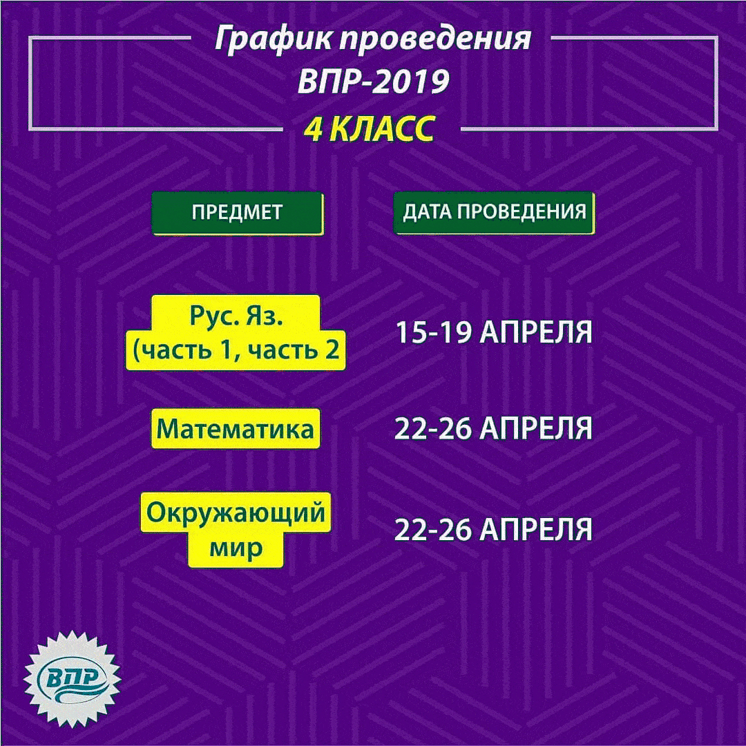 График проведения ВПР в 2019 году