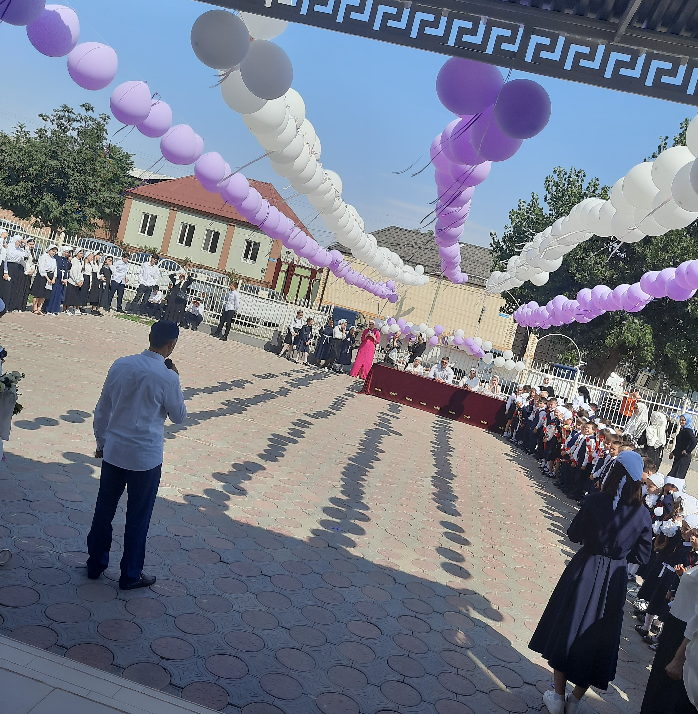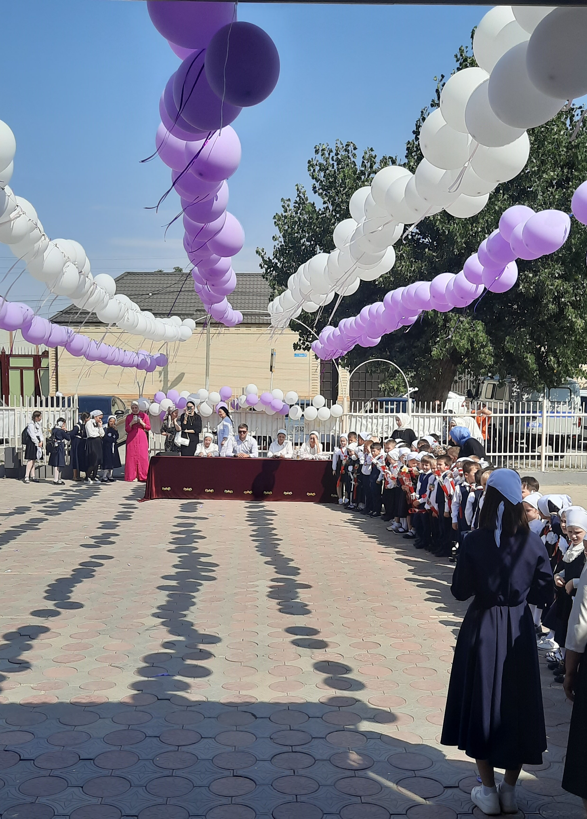 Тожественная линейка началась с поднятия Государственных флагов под гимн страны; выступили: директор школы Л.С. Цумаева, приглашённые гости. Представитель Администрации Ачхой-Мартановского муниципального района Батаев А.С. поздравил обучающихся и учителей с новым учебным годом и пожелал творческих успехов.