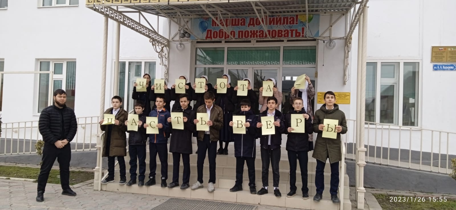 26 января текущего учебного года в школе были проведены такие благородные мероприятия, как беседы в 5 – 9 классах «Чистота – половина веры»; «Благородные порывы»; благоустройство пришкольной территории и флешмоб «Чистота – часть веры».